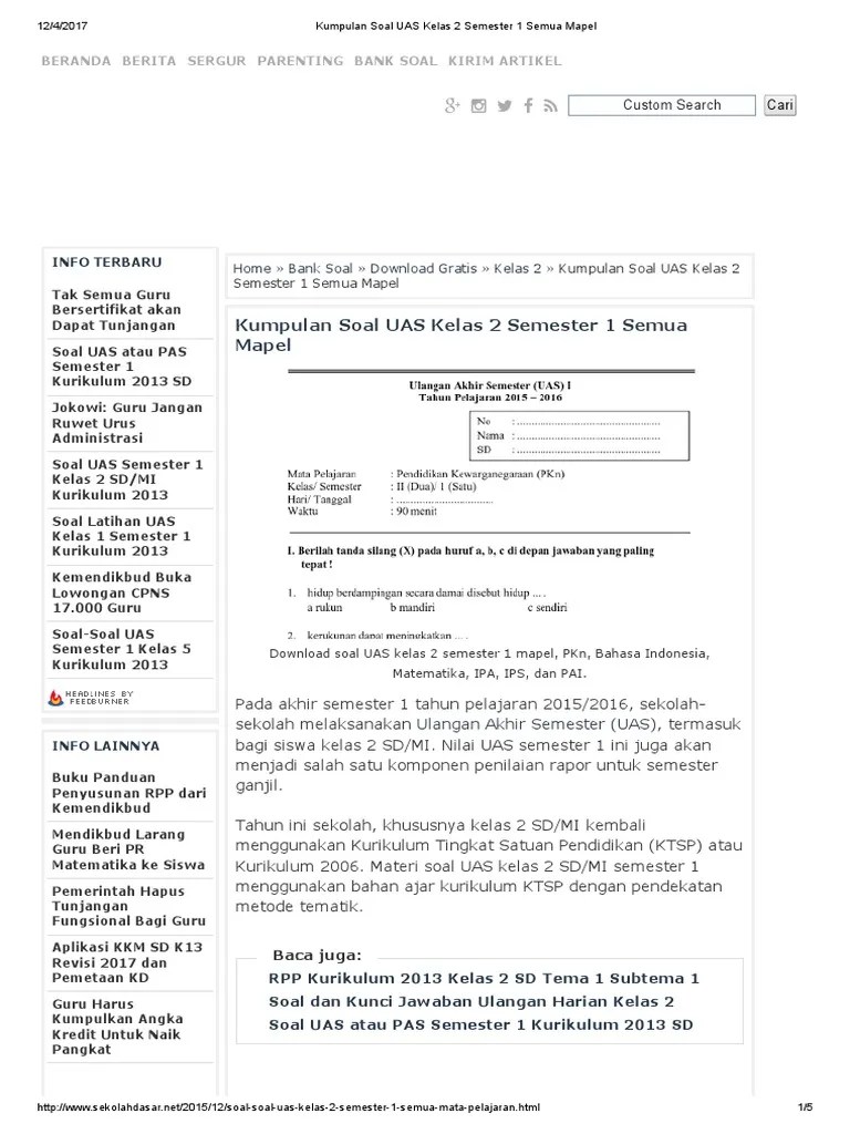 Bank soal kelas 1 semester 2 pdf; Website berisi latihan soal tematik kurikulum 2013, soal tema, soal subtema, soal ktsp, soal uas dan uts, soal pas dan pts, download latihan . Bank soal kelas 1 sd semester 2 kurikulum 2013; Bank soal ini kami simpan dan bagikan dalam . Paket buku pelajaran sd :