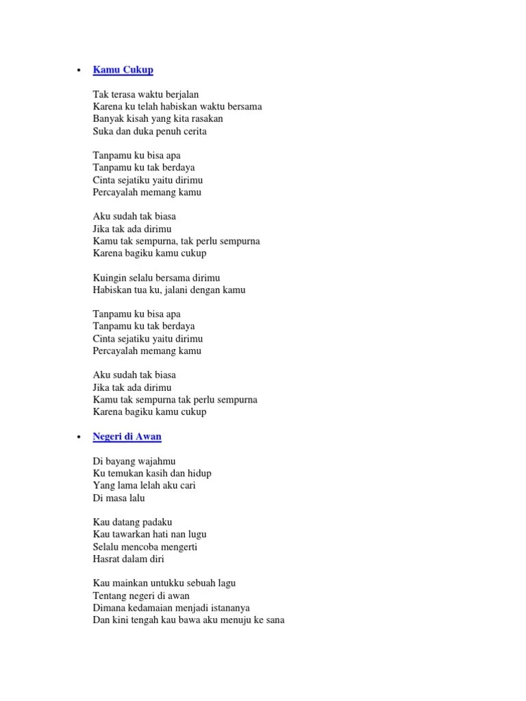 Beriku lirik lagu bisa tanpamu. Saling mencinta susah tuk menyatu. Ku harus pergi tapi tak bisa Lagu dangdut baru 2018 ciptaan adit losta. Lirik dan info lagu tanpamu ku tak bisa baca disini. Silahkan pergi, pergi menjauh dariku. Tanpamu ku tak bisaartist : Seharusnya ku tak memulai semua. Ku pejamkan mata ini ku rasakan belaianmu sungguh indahnya dirimu aku jadi cinta tak terbayang di benakku bila engkau tinggalkan aku Pedangdut via vallen mendapat protes dari pencipta lagu 'tanpamu ku tak bisa' di medsos. Berikut ini adalah lirik lagu dan chord 'bisa tanpamu' yang dinyanyikan oleh andmesh, akan ku buktikan. Lirik lagu bisa tanpamu dari andmesh 'akan ku buktikan bahwa ku bisa tanpamu. Dan ku nyanyikan sebuah lagu.